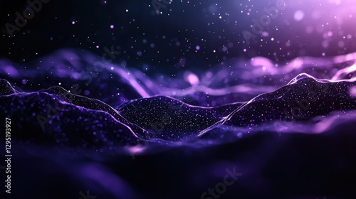 Wall mural purple and black abstract background with light blur and digital particle waves in high fidelity des
