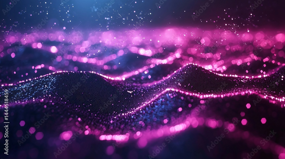 The watermark will not be included on Wall mural.: Purple and blue background with radiant highlights showcasing a unique glitch effect creating a capt
