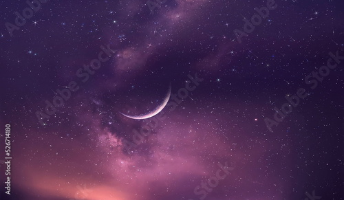 Wall mural purple blue starry sky and full moon sunset nebula comet meteor stars fall shower lilac pink reflect - Wall murals Wall mural purple blue starry sky and full moon sunset nebula comet meteor stars fall shower lilac pink reflect - Wall murals