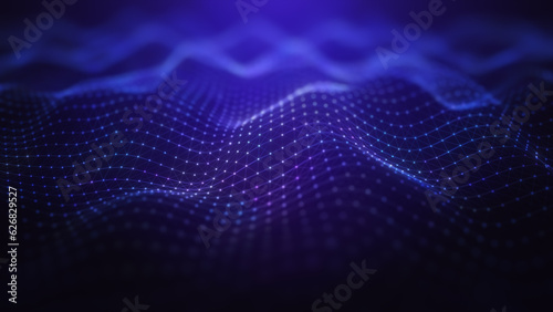 The watermark will not be included on Wall mural.: Purple color particles wave flowing with lines and dots connection, digital cyberspace is futuristic