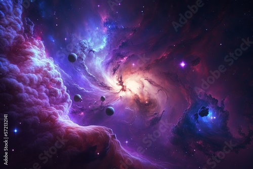 The watermark will not be included on Wall mural.: Purple galaxy universe background, generative ai