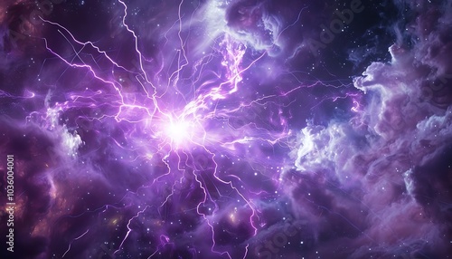 Wall mural : Purple lightning in the space, computer generated abstract background