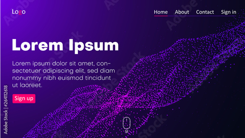 Wall mural : Purple web homepage template with icons and abstract digital neon pattern -