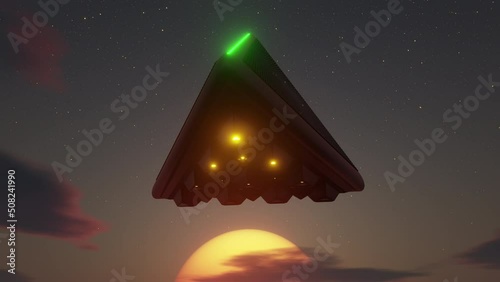 The watermark will not be included on Wall mural.: Pyramid ufo jets hover sun stars 3d seamless loop