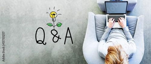 The watermark will not be included on Wall mural.: Q and a text with man using a laptop