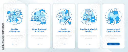 Wall mural : Qms structure blue onboarding mobile app screen - walkthrough 5 steps editable graphic instructions w