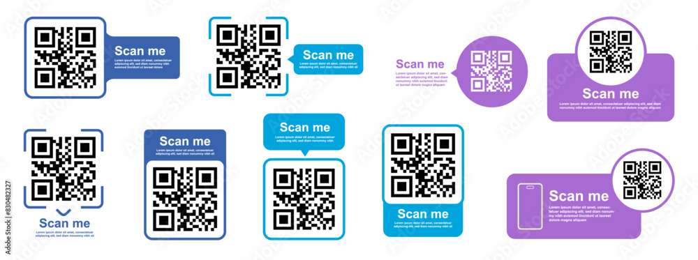 Wall mural qr code color set. barcodes with text scan me. marketing and electronic commerce. poster or banner f - Wall murals Wall mural qr code color set. barcodes with text scan me. marketing and electronic commerce. poster or banner f - Wall murals