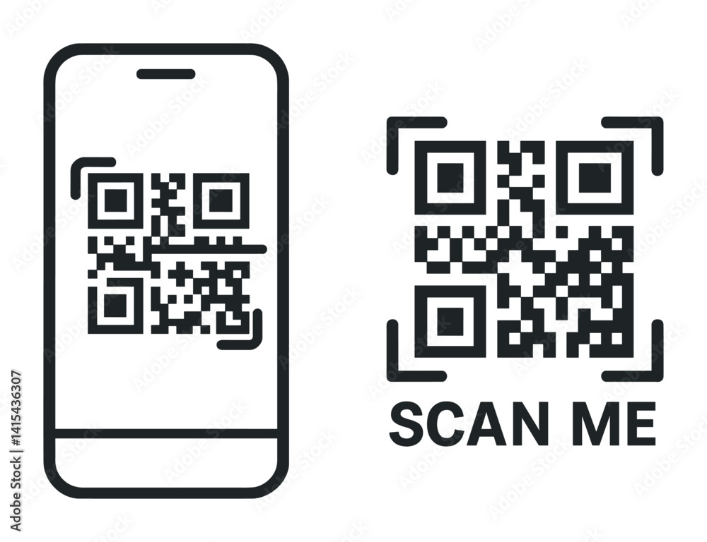 The watermark will not be included on Wall mural.: Qr code icon set: mobile scanning and qr display in linear style