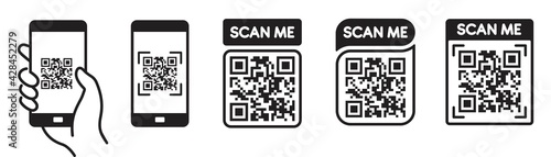 The watermark will not be included on Wall mural.: Qr code scan icon with smartphone, scan me barcode sign, vector illustration -