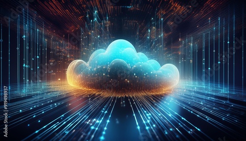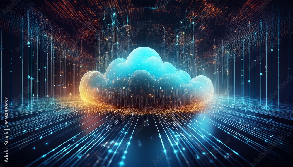 Wall mural : Quantum cloud computing visualization with data streams forming intricate 3d fractals in cyberspace