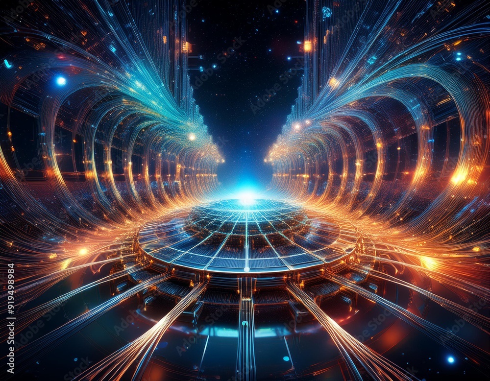 Wall mural quantum computer core visualized as a cosmic web of entangled particles data streams flow through cr