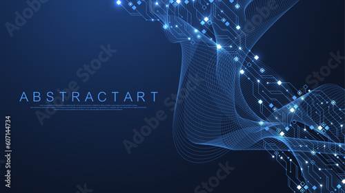 Wall mural quantum computer technologies concept. futuristic blue circuit board background vector. modern techn - Wall murals Wall mural quantum computer technologies concept. futuristic blue circuit board background vector. modern techn - Wall murals