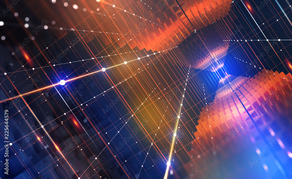 The watermark will not be included on Wall mural.: Quantum computer - global network technology blockchain - digital world of future - 3d illustration bac