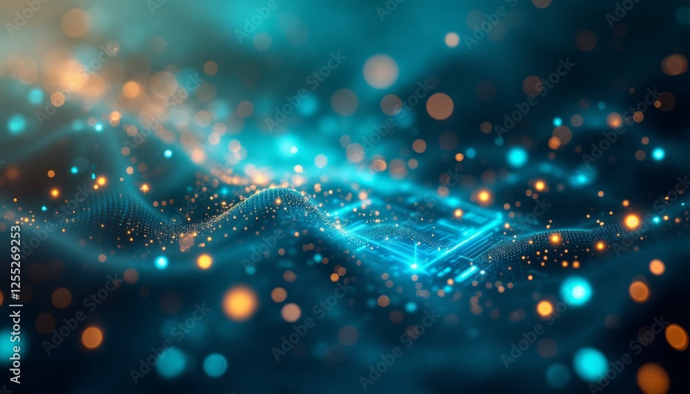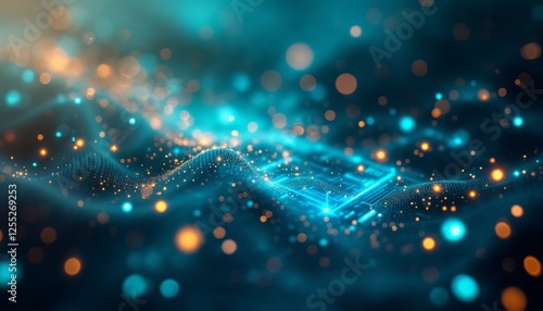 The watermark will not be included on Wall mural.: Quantum computing landscape a symphony of data and luminescence
