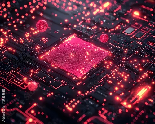 The watermark will not be included on Wall mural.: Quantum computing power represented by a glowing circuit board