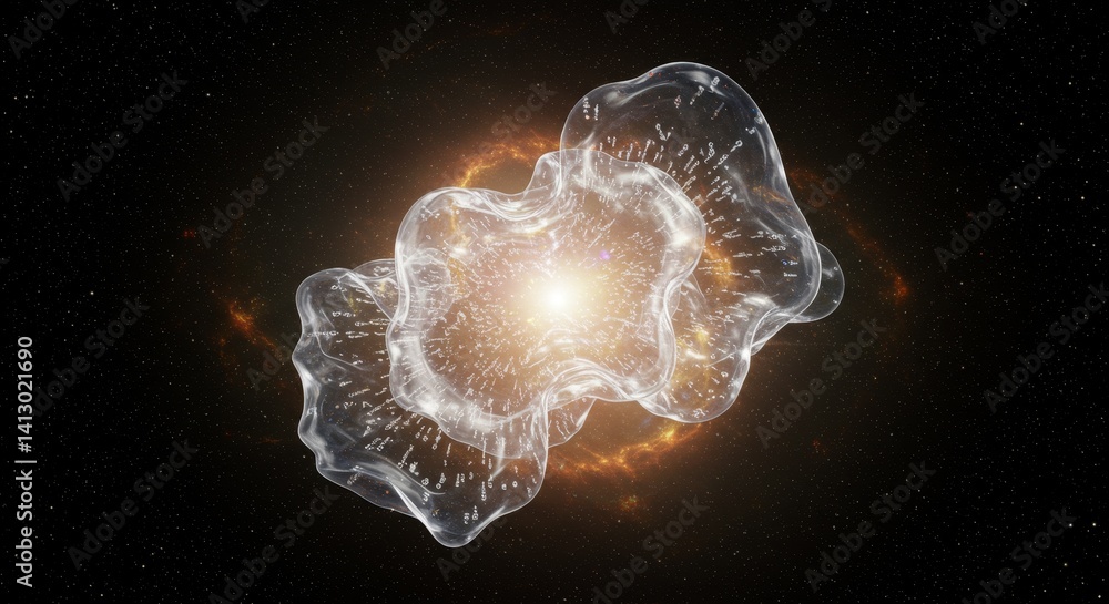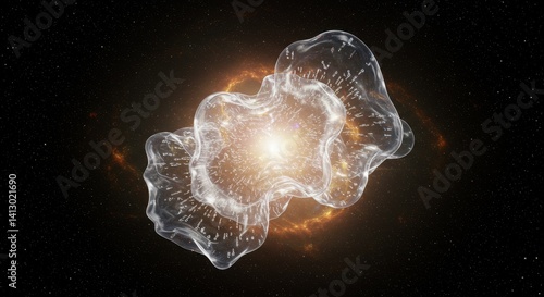 Wall mural quantum fusion organism in space-time fluctuations - ai-generated depicting a translucent organism,