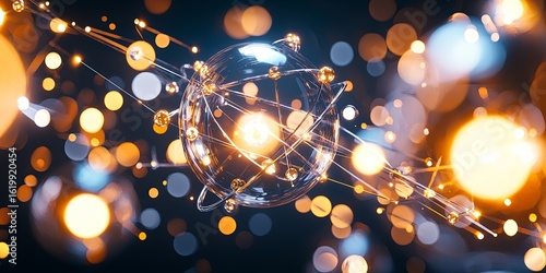Wall mural : Quantum mechanics concepts illustrated with floating equations, a transparent atom model, and a subt