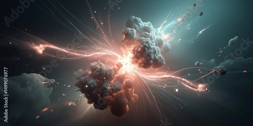Wall mural quantum physics computing concept. dramatic explosion with colorful light and dynamic energy.
