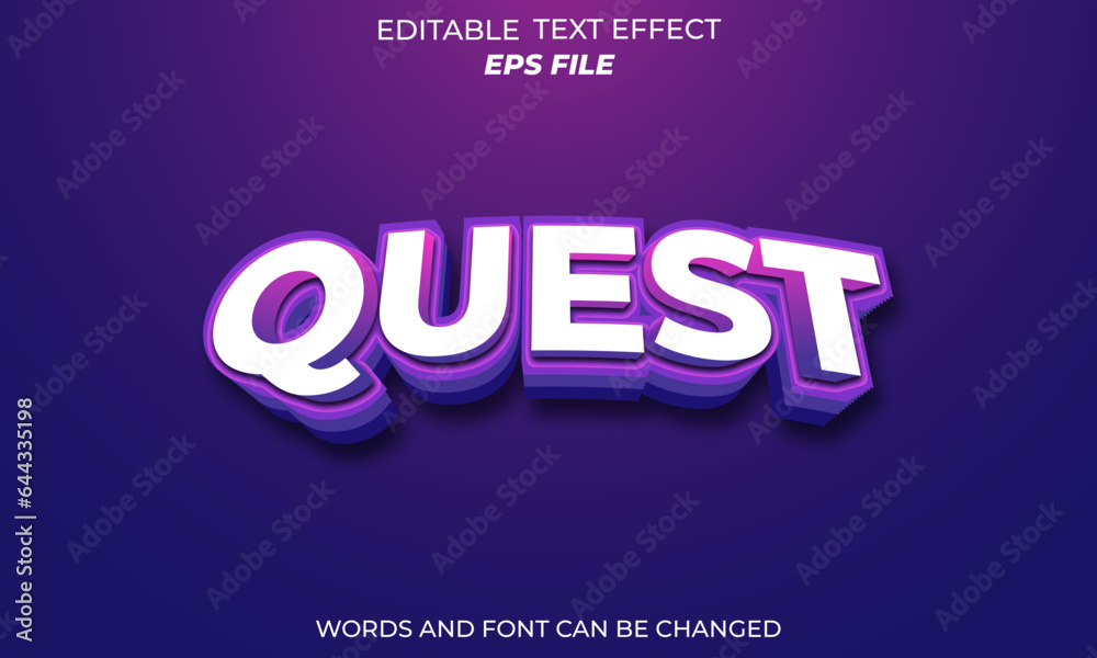 The watermark will not be included on Wall mural.: Quest text effect - font editable, typography, 3d text - vector template