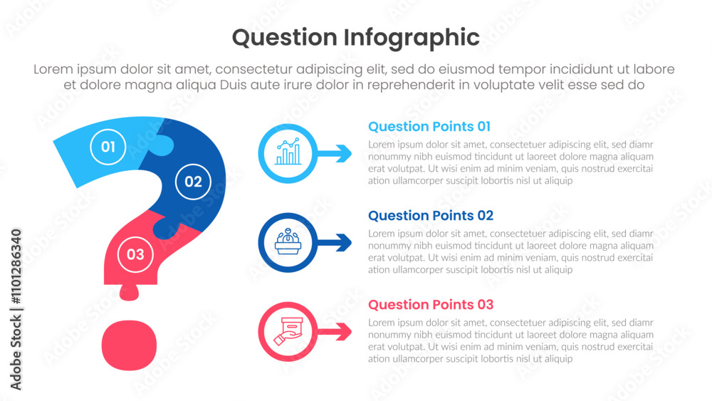 Wall mural : Question infographic template banner with big question puzzle structure with outline circle arrow st