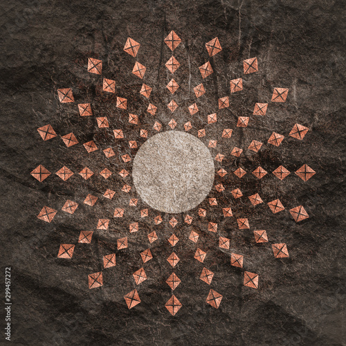 The watermark will not be included on Wall mural.: Radial rhombus in circle form - fireworks explosion background - circular design element - abstract geo