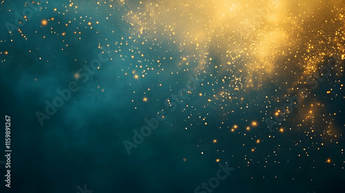 The watermark will not be included on Wall mural.: Radiant abstract background of golden dust spiraling on a dark teal backdrop with glowing nebula eff