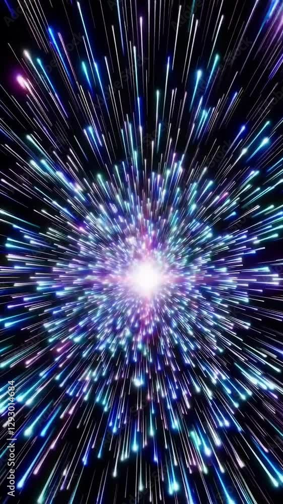 The watermark will not be included on Wall mural.: Radiant cosmic burst journey through vivid light trails exploding in space
