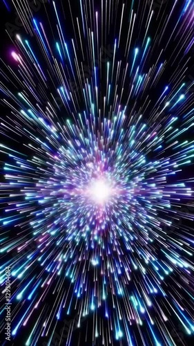 Wall mural : Radiant cosmic burst journey through vivid light trails exploding in space