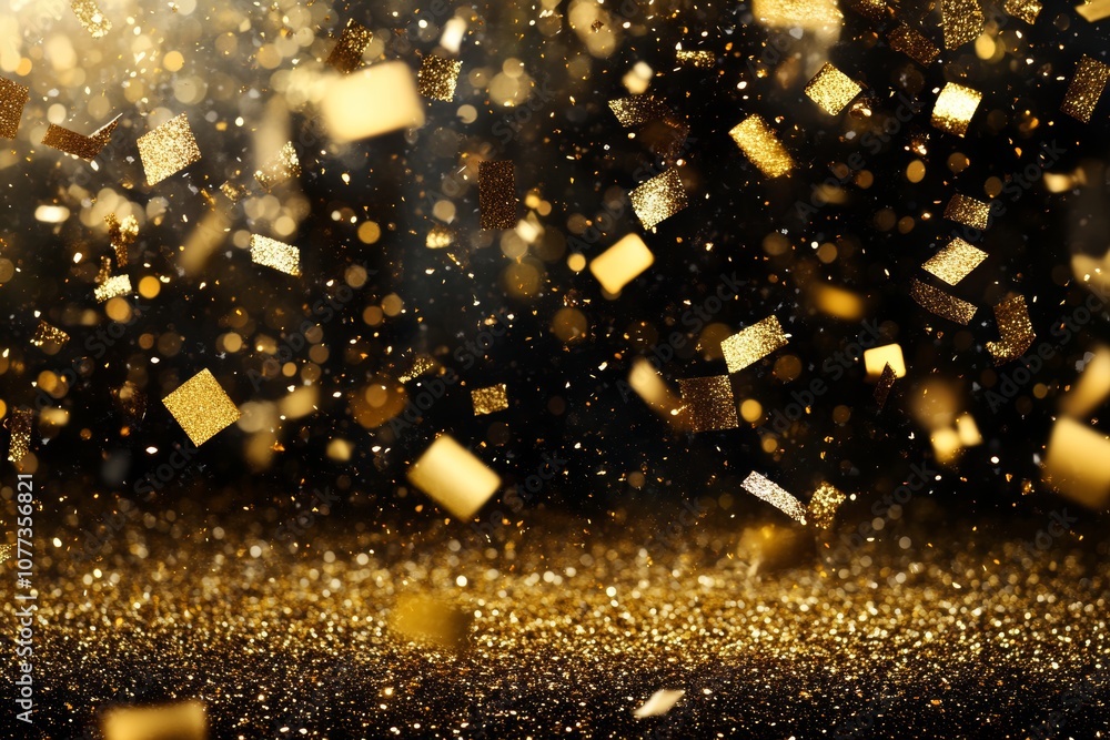 The watermark will not be included on Wall mural.: Radiant golden glitter and shimmering particles floating in beams of warm light, creating a sparklin