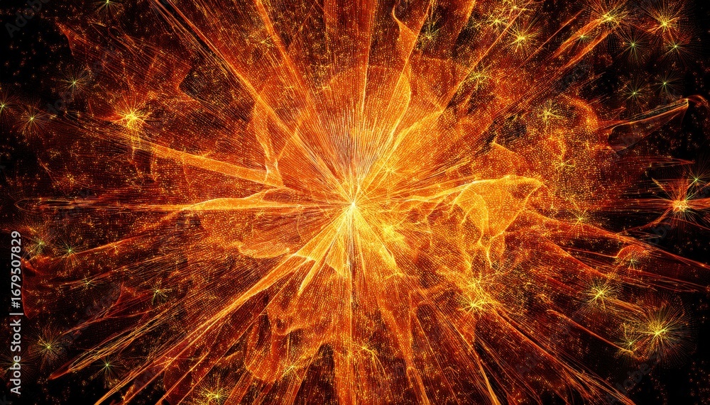 Wall mural radiant golden light explosion with glowing particle burst abstract energy background perfect for di