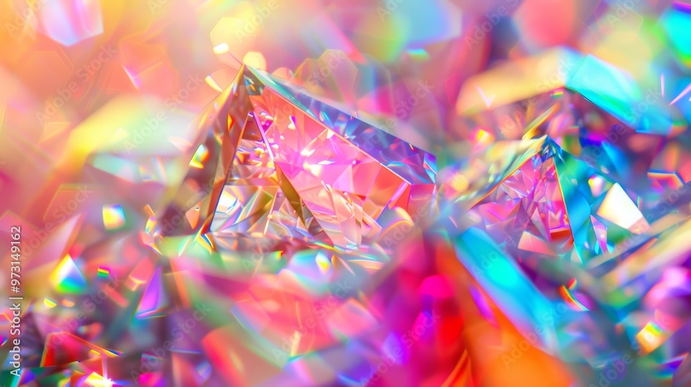 The watermark will not be included on Wall mural.: Radiant holographic shapes with a 3d effect, displaying a spectrum of colors and light refractions -