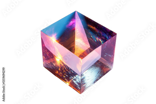 The watermark will not be included on Wall mural.: Radiant prism capturing ethereal starlight a mystical cube reflecting cosmic wonders illuminating ex