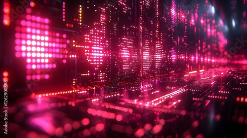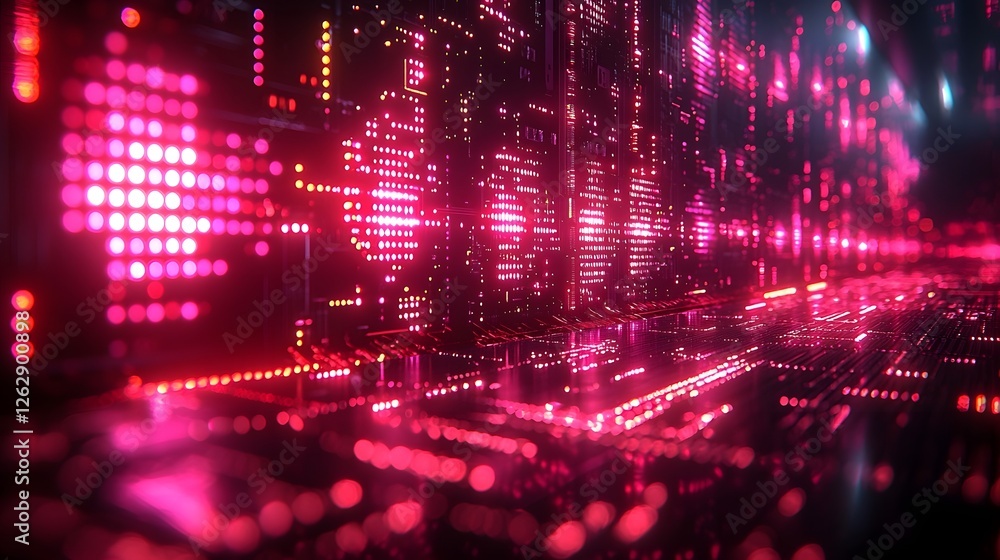 The watermark will not be included on Wall mural.: Radiant quantum supercomputer circuits forming mesmerizing interconnected glowing pattern