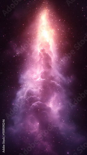 The watermark will not be included on Wall mural.: Radiant starburst with pink cosmic clouds and shimmering light beam in a vibrant space scene