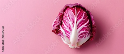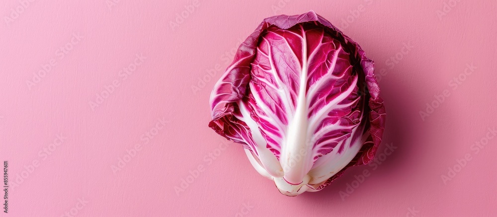 Wall mural radicchio leaf isolated on pastel background food isolated. copy space image. place for adding text  - Wall murals Wall mural radicchio leaf isolated on pastel background food isolated. copy space image. place for adding text - Wall murals