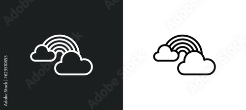 Wall mural : Rainbow behind a cloud icon isolated in white and black colors - rainbow behind a cloud outline vecto