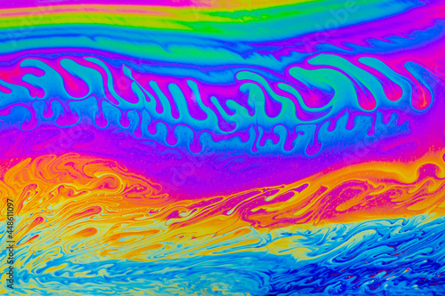 Wall mural rainbow colors. psychedelic multi colored patterns background. photo macro shot of soap bubbles