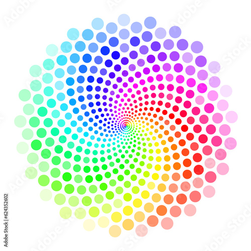 Wall mural rainbow dots color wheel. radial pattern of colorful circles with spiral twirl effect.