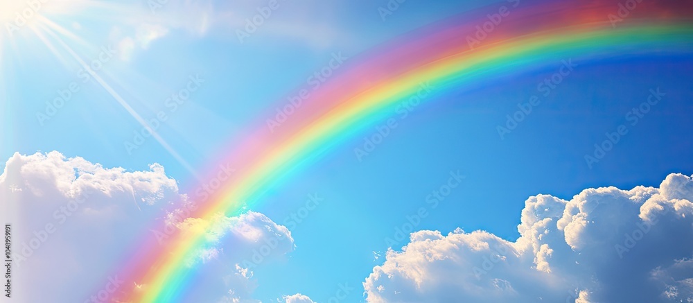 Rainbow set against a whimsical blue sky - with copy space image - place for adding text or designWall mural