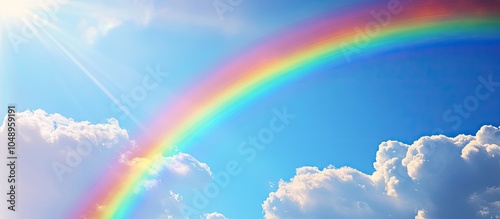 Wall mural rainbow set against a whimsical blue sky. with copy space image. place for adding text or design