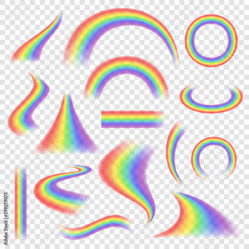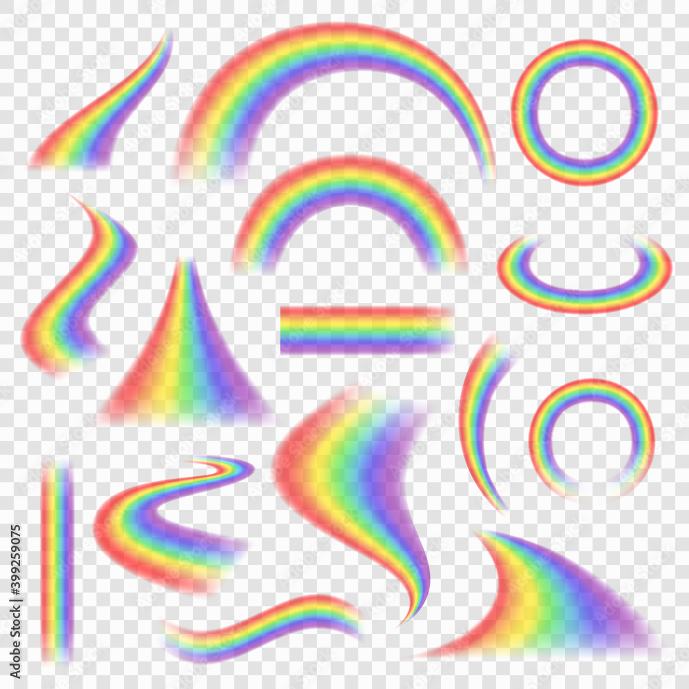 The watermark will not be included on Wall mural.: Rainbow set - colored weather objects spectrum arch rainbow vector realistic pictures - rainbow transp