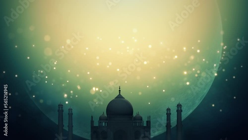 Wall mural ramadan red big moon and up light background loop. 3d rendering. silhouette of taj mahal with partic - Wall murals Wall mural ramadan red big moon and up light background loop. 3d rendering. silhouette of taj mahal with partic - Wall murals