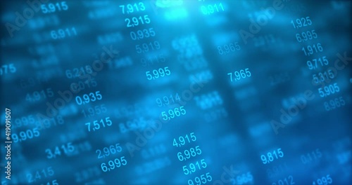 Wall mural random digit number with updating stats, stock and number of sales, percentage, growth, decline. abs