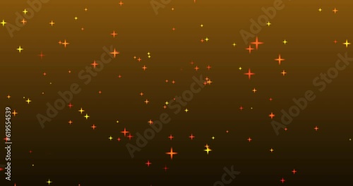 Wall mural randomly flying in the air yellow sparkling particles in the form of stars on a yellow background. a