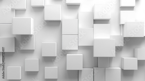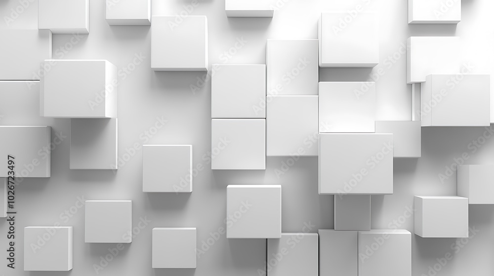 The watermark will not be included on Wall mural.: Randomly shifted white cube block background with copy space for product design