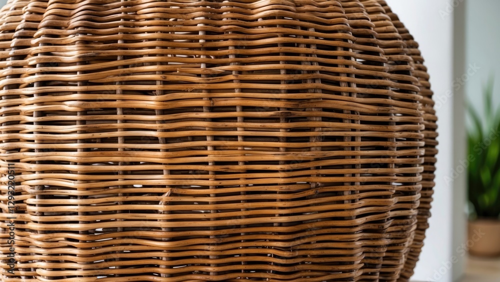 Rattan wicker texture showcasing intricate woven patterns on a decorative object in a modern interioWall mural