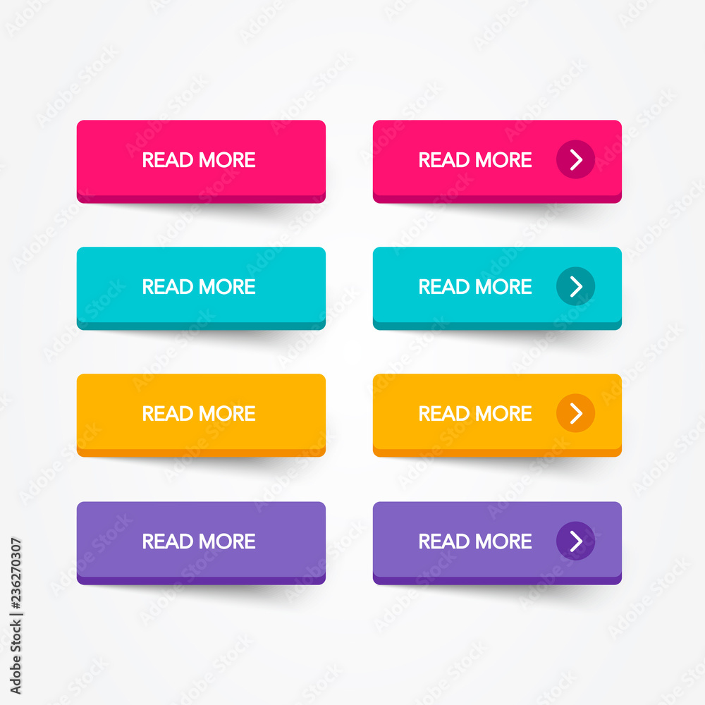 Wall mural read more colorful 3d button set on white background. flat line button collection. vector web elemen - Wall murals Wall mural read more colorful 3d button set on white background. flat line button collection. vector web elemen - Wall murals