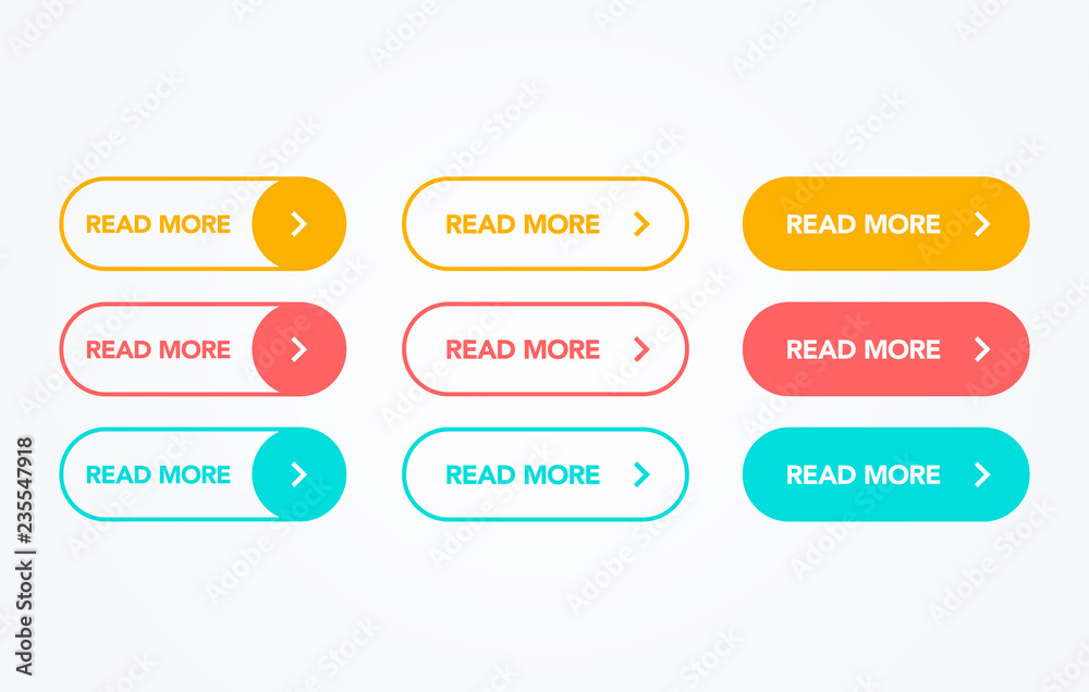 Wall mural read more colorful button set on white background. flat line action button collection. vector web el - Wall murals Wall mural read more colorful button set on white background. flat line action button collection. vector web el - Wall murals