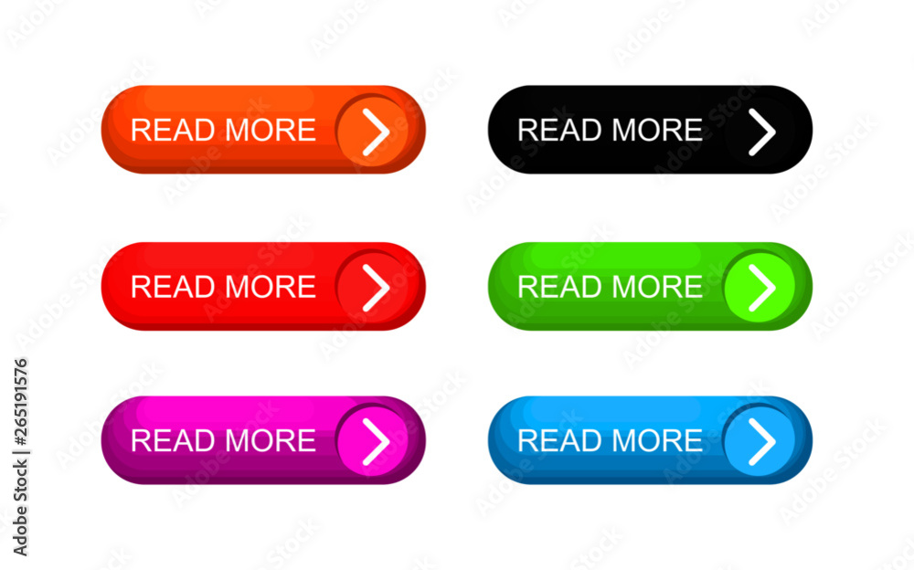 Wall mural read more colorful button set with icons web isolated on white background. vector illustration. - Wall murals Wall mural read more colorful button set with icons web isolated on white background. vector illustration. - Wall murals