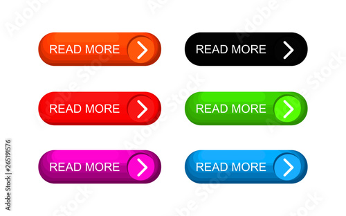 Wall mural read more colorful button set with icons web isolated on white background. vector illustration.